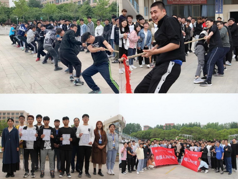 本次活动参赛的队伍来自2020级自动化、信控、机器人专业13个班级,每个班级15人,比赛实行男女混合,三局两胜制。比赛前,参赛班级提前到比赛场地排兵布局,制定策略,充分做好准备工作。比赛开始,随着裁判员的一声哨响,双方队员全身心投入,个个斗志昂扬,齐心协力往后拉;各班啦啦队热情高涨,加油声、呐喊声此起彼伏,震耳欲聋。半决赛时,公司党委书记欧阳文峰亲自上阵为机器人队做技巧指点,加油鼓劲,机器人队斗志空前高涨、全力以赴,自动化队也不甘示弱、顽强拼搏,精彩的拉锯战和整齐划一的口号声将整个比赛推向了高潮。最后,机器人两队成功晋级总决赛,而后转入友谊赛。最终机器人1班、机器人2班分别荣获冠、亚军,自动卓1班、自动化2班荣获季军,自动卓1班、机器人2班荣获最佳风尚奖。比赛结束后,欧阳文峰书记和梅苏蔓老师为获奖班级颁奖,并合影留念,“大力神杯”拔河比赛圆满落幕。